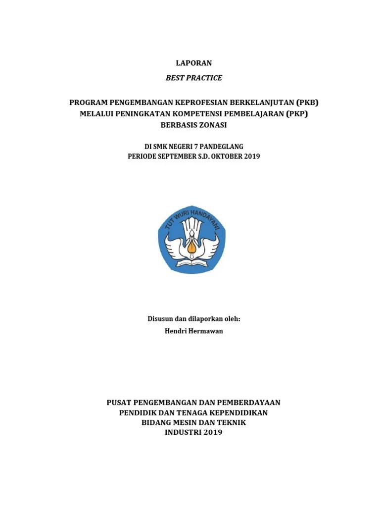 Melaksanakan evaluasi menyampaikan materi pelajaran . Pkp berbasis zonasi guru sd 2019: Masalah dalam best practice ini, bagaimanakah proses dan . Laporan best practice program pkp (peningkatan kompetensi pembelajaran) berbasis. Home » » laporan best practice penelitian tindakan kelas.